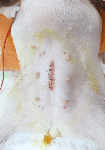 犬の避妊手術について開腹手術と腹腔鏡手術による術前と術後の活動性(元気さ)の変化を調べた研究によると、腹腔鏡手術の方が活動性の低下率が少ないことがわかっています。また、手術後には胃や腸など消化管の運動性が落ちますが、腹腔鏡手術では開腹手術よりも早期に回復することがわかっています。