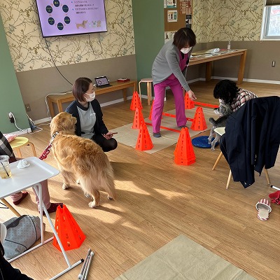 今回初参加のVicちゃんは他のわんちゃんが苦手…とのことだったのですが、教室がはじまるってみると、意外と・・・